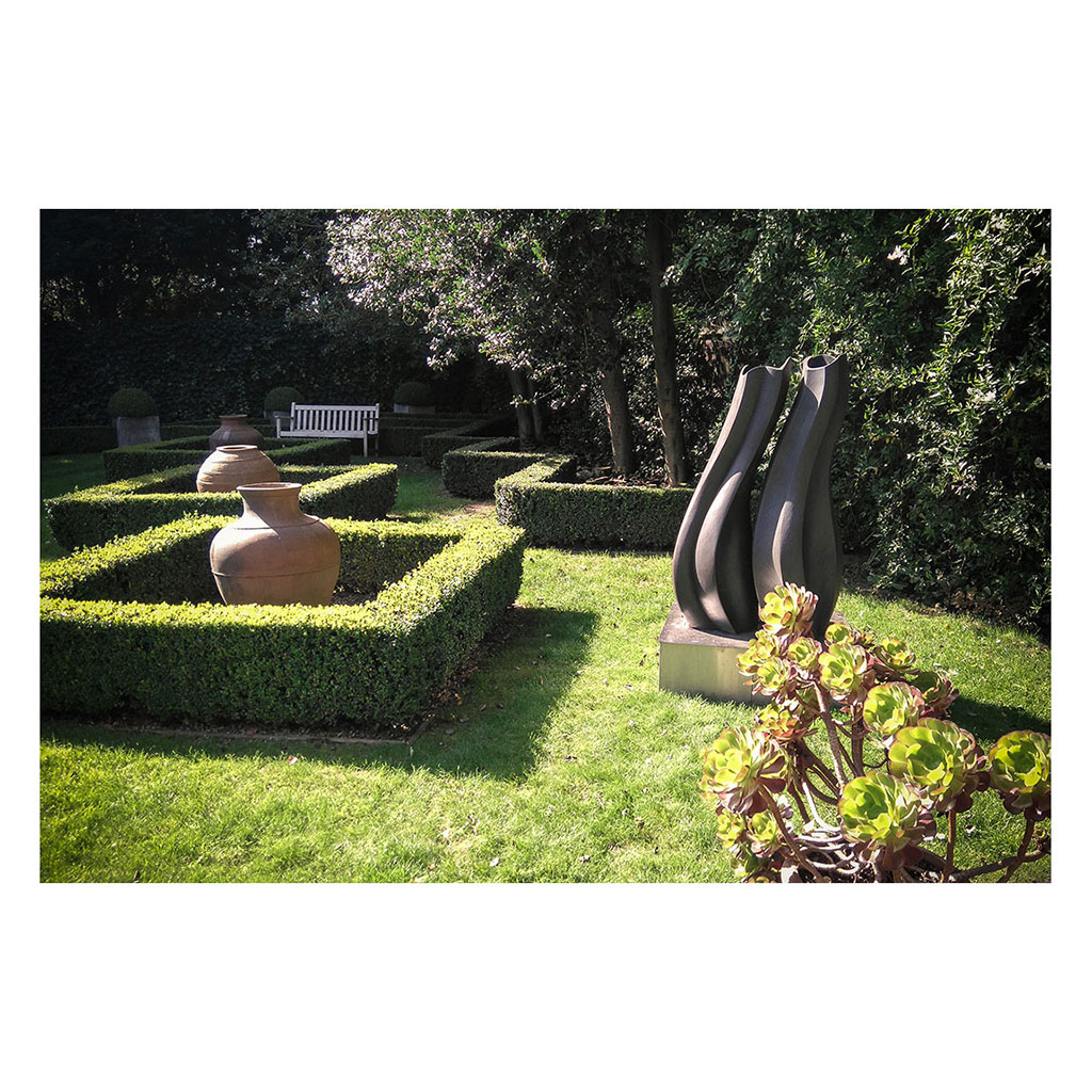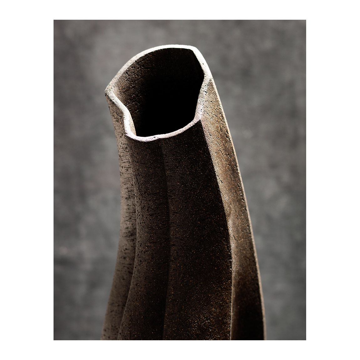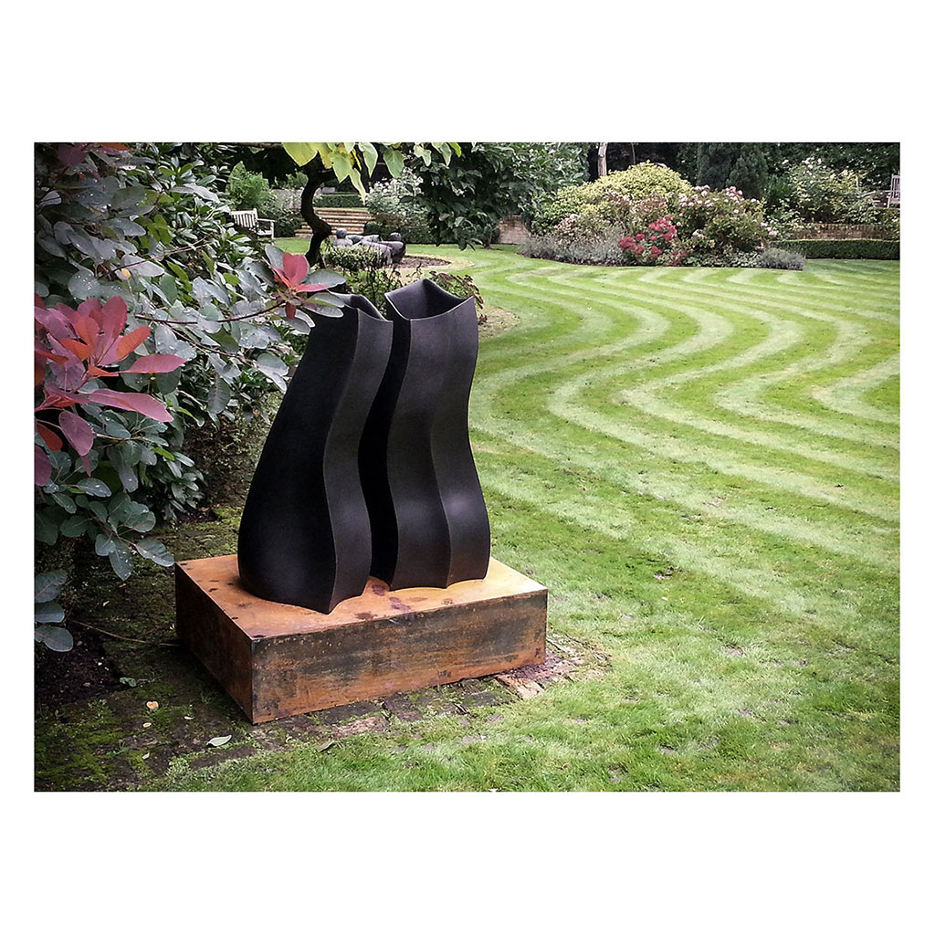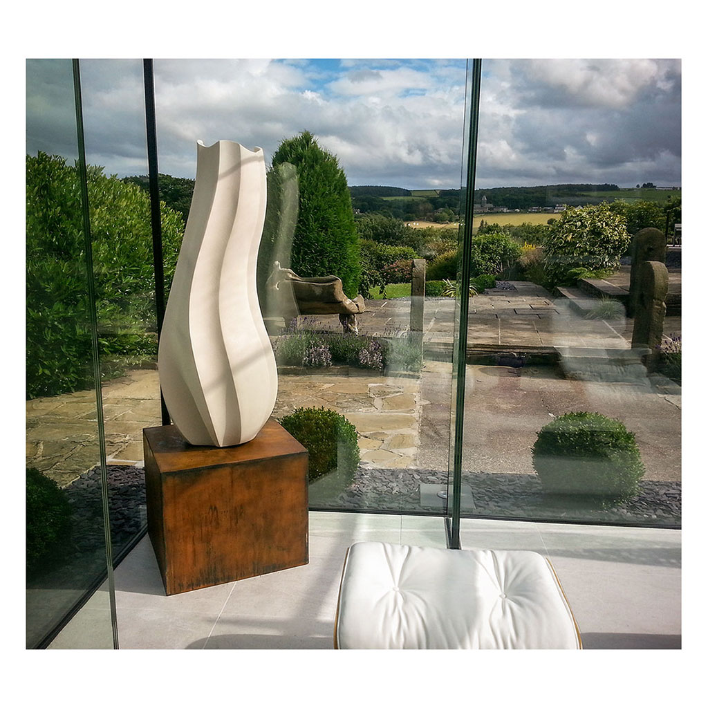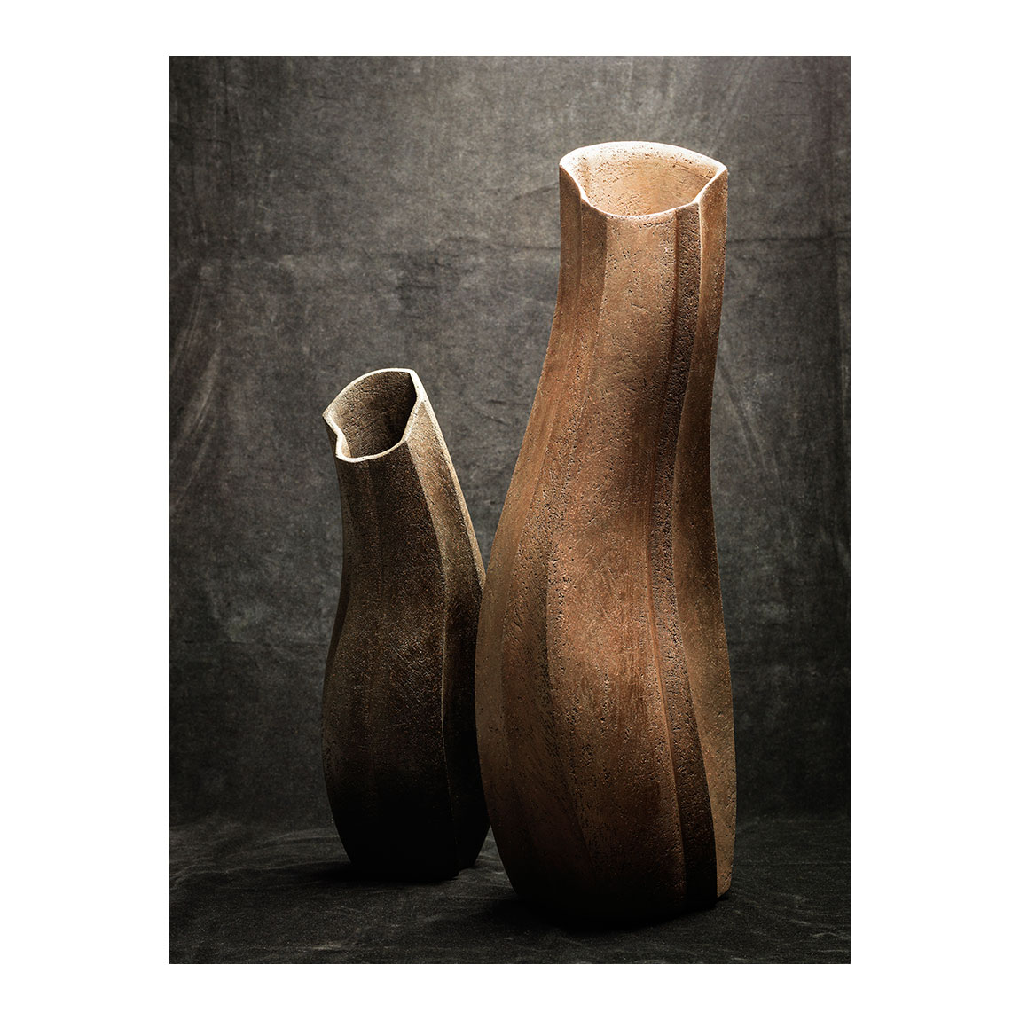 Vessel forms are constructed using curved sections of clay, which are cut and assembled in stages to create sinuous flowing sculptures that appear to float. I use a variety of clay bodies often relying on the clay itself to create the finished colour. I have particularly enjoy working with black and white clay. The striking tones create amazing shadows and respond to the changing light of their environment.